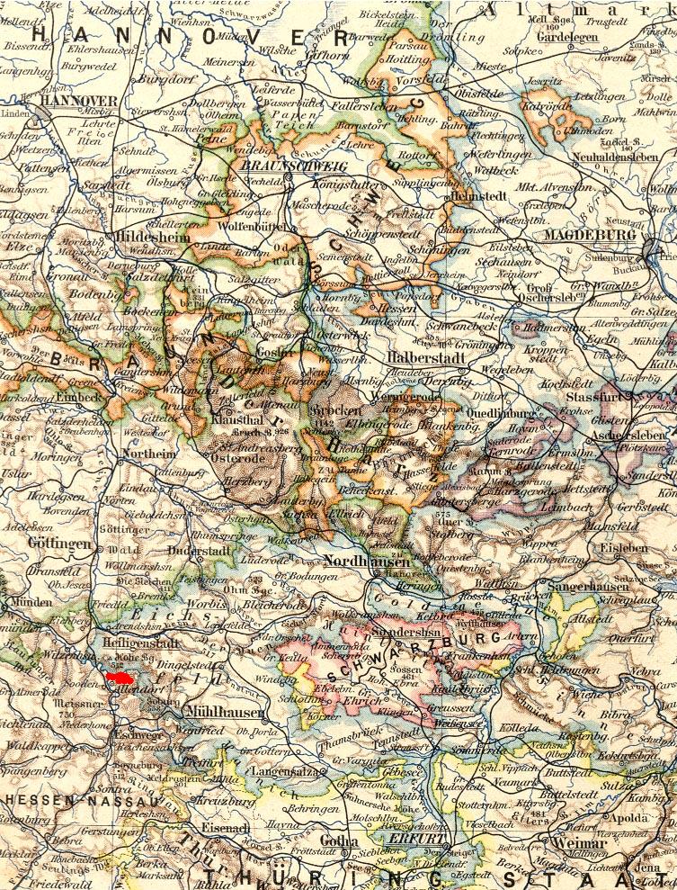 ursprünglich zu Thüringen gehörte und der Ort an der Westgrenze lag. Zunächst